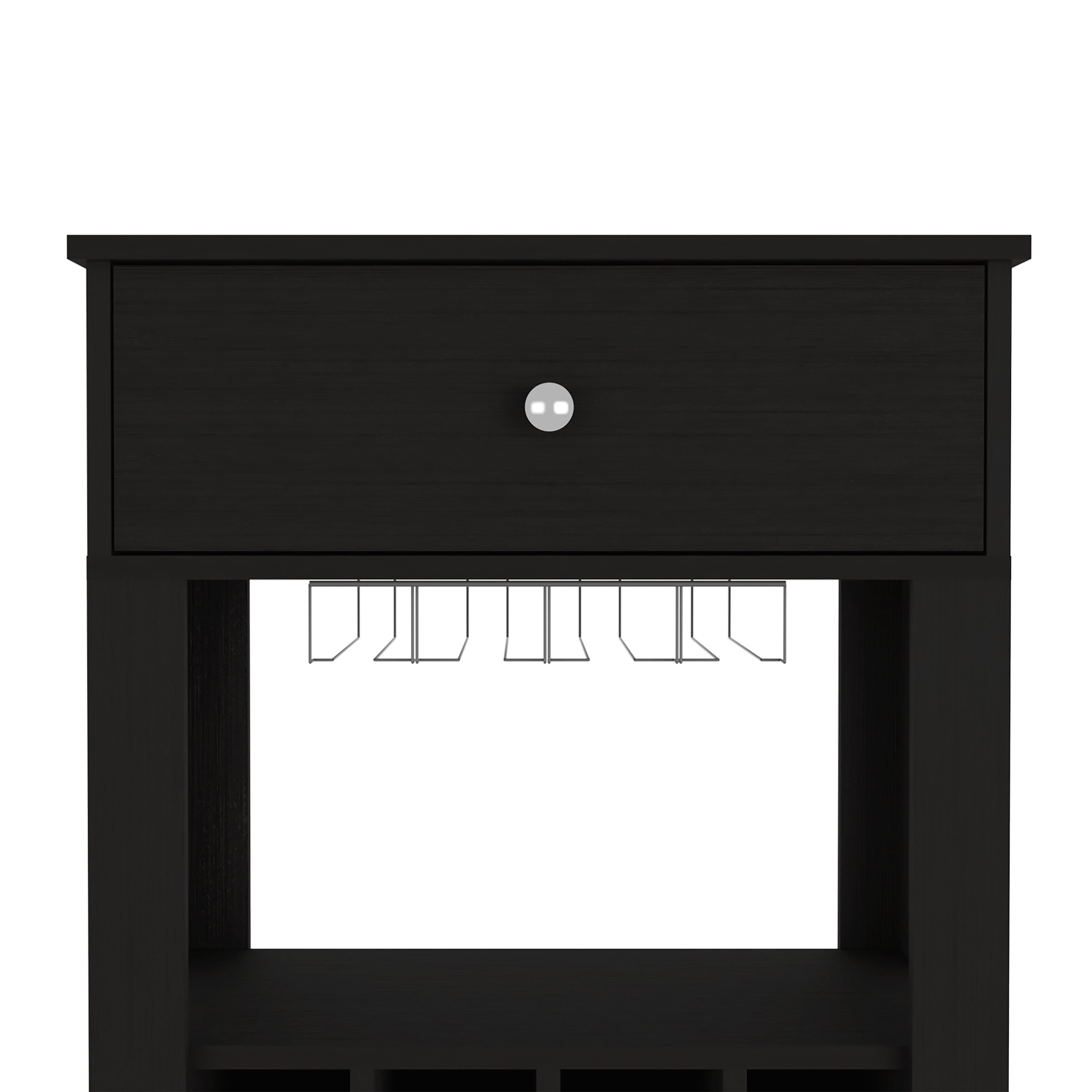 39" H black bar- coffee cart, Kitchen or living room cabinet storage, with 12 bottle racks, a central shelf with 1 Cup holders, 1 drawer ideal for sto