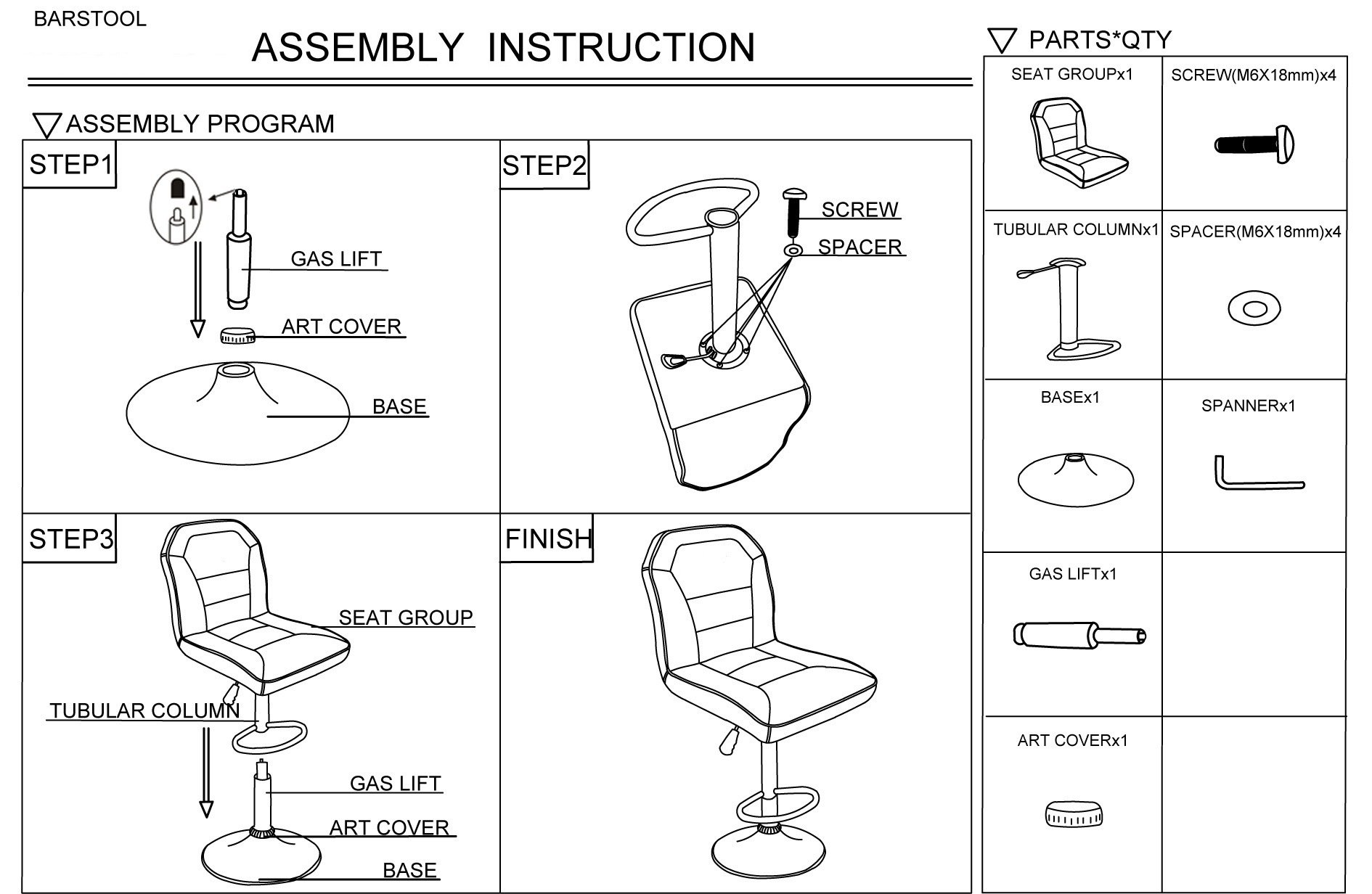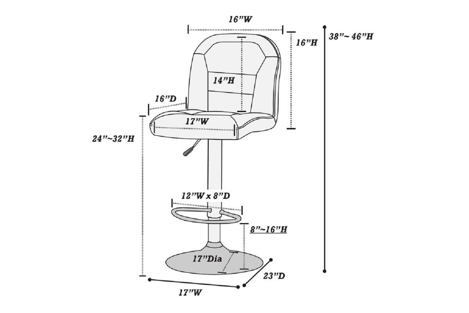 2x Bar Stool / Adjustable Stools :- 17" x 23" x 38"~46"H; Seat 24"~32"H