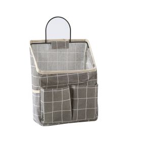1pc Hanging Storage Bag, Wall Hanging Organiser Basket With Bathroom Pocket, Bedroom, Kitchen, Dormitory Dormitory, Essentials (Quantity: 1, Color: Gray Check)