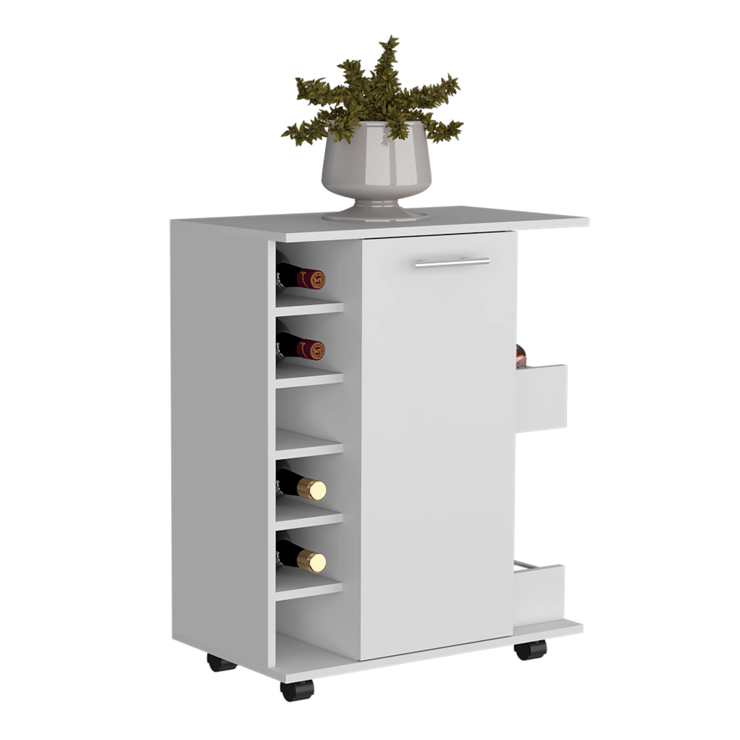 The kitchen island features a single-door cabinet (10.5"W x 17.8"H) that provides concealed storage, perfect for keeping your cookware, bakeware, or tableware organized and within reach.