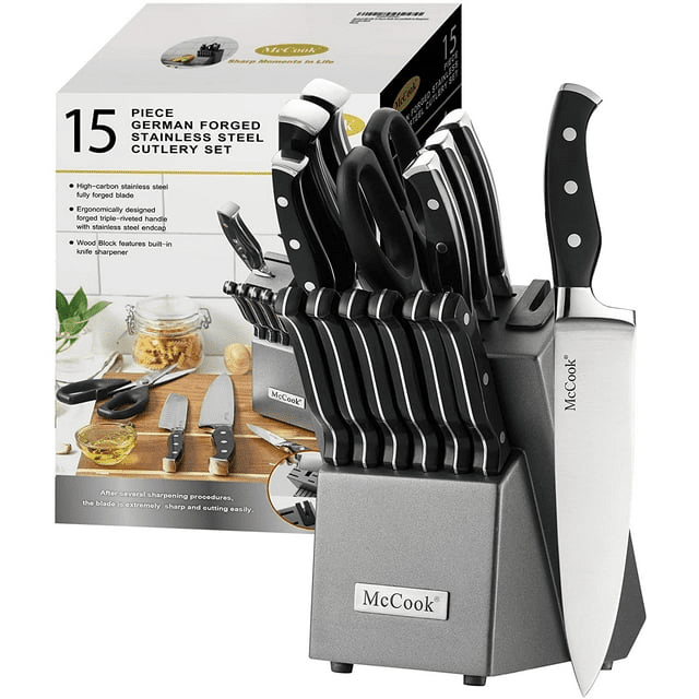 Home > McCook MC25A 15-Piece Kitchen Knife Set Stainless Steel Forged Triple Rivet Cutlery Knife Block Set with Built-in Sharpener,Chef Knife,Steak Knife
