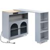 [Fluted Glass Door & LED Light] Our kitchen island on wheels boasts two exquisitely crafted fluted glass doors, which not only refract light but also create a captivating misty effect. The incorporation of sleek white LED lights within the foggy surface adds an enchanting aesthetic touch, elevating the overall allure of your kitchen space. Furthermore, you have complete control over the LED switch through the power outlet.