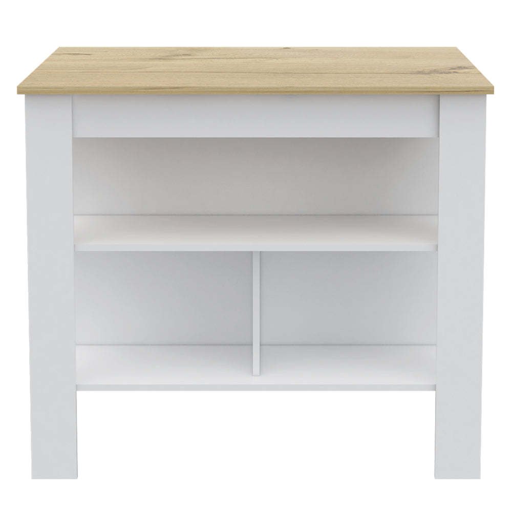 2.The Brooklyn kitchen island includes three low shelves with ample storage capacity, making it perfect for holding all of your kitchen essentials.