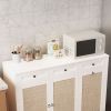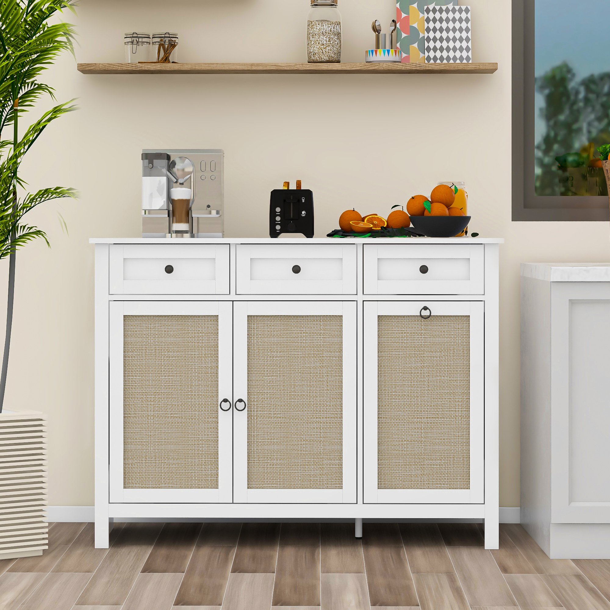 Home > Tilt Out Trash Cabinet, Rattan Kitchen Trash Can Cabinet with 3 Drawers and 2 Doors, Wooden Freestanding Storage Cabinet with Adjustable Shelf for Kit