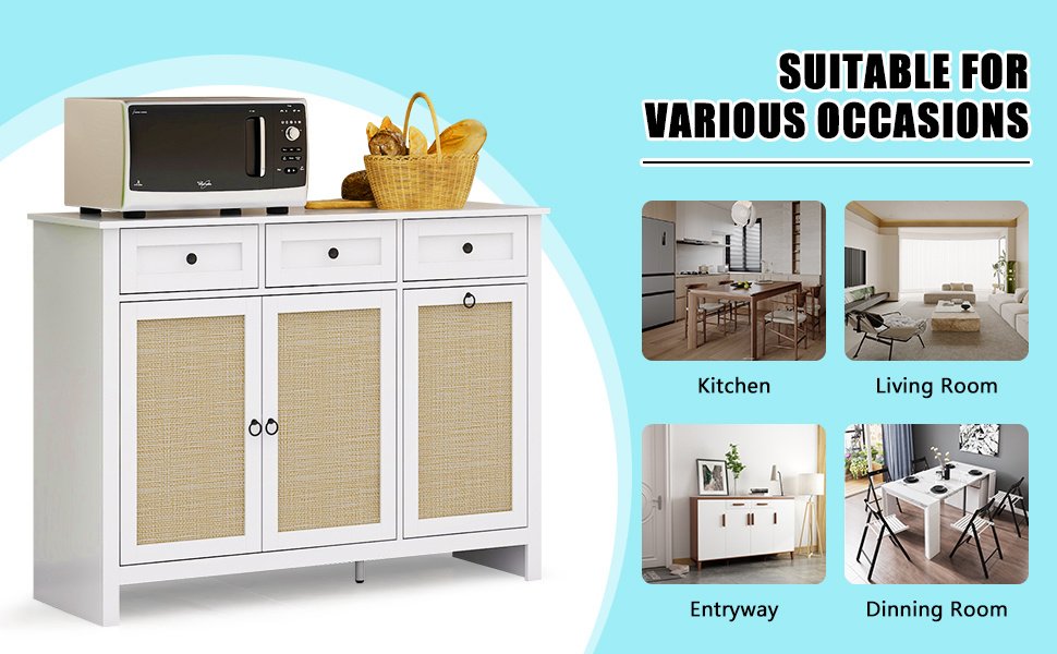 [Multifunctional Storage Cabinet] This cabinet can be used as a kitchen island or to store dog and cat food. The top of the cabinet provides considerable storage space for small kitchen appliances, allowing you to use it as a coffee bar cabinet. Or you will even see it in the laundry since your laundry basket would lie cozily in the cabinet with tilt out door.